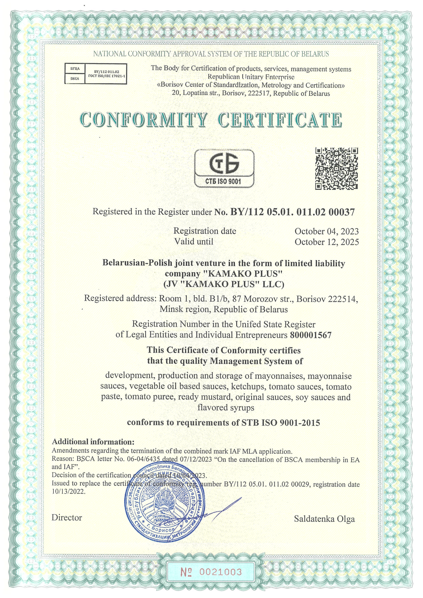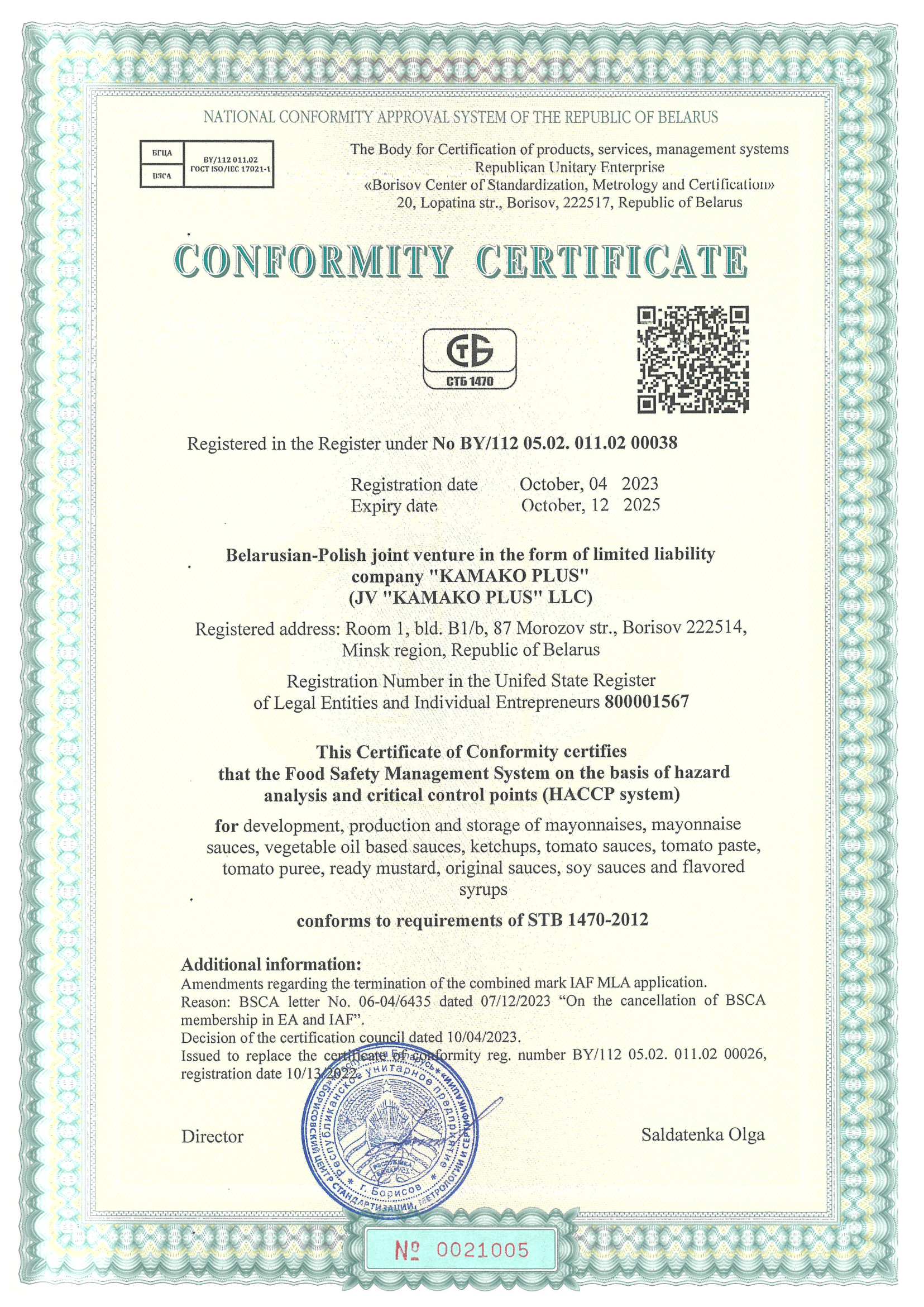 Since the Company’s first days, the main principle was to ensure the product quality. Therefore, in June 1998, we created our own testing laboratory accredited by the national accreditation system of the Republic of Belarus where all raw materials and finished products undergo thorough quality control. It was established to improve our competitiveness on the market in Belarus and abroad, to continuously enhance the production quality, to meet the consumer needs, to improve management efficiency and provide stability and social guarantees to those employed.